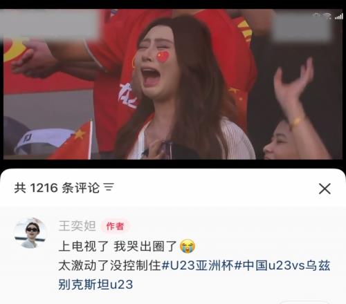 为U23国足喜极而泣的女球迷:我哭出圈了,太激动了没控制住