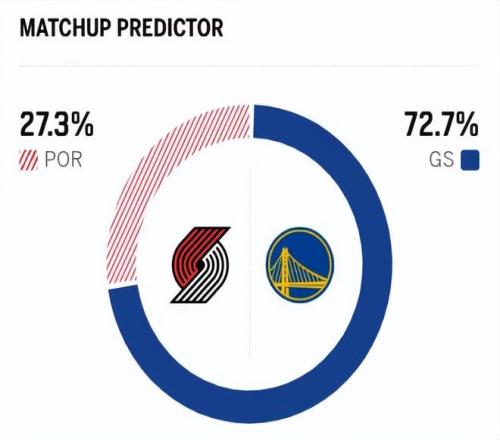 两队本赛季已经交手三次,开拓者三战全部取胜,他们的“超级大个子阵容”显然非常克制勇士。赛前,美媒ESPN对本场比赛进行了胜率预测,开拓者的胜率仅有27.3%,劣势明显,勇士队的胜率则高达72.7%。